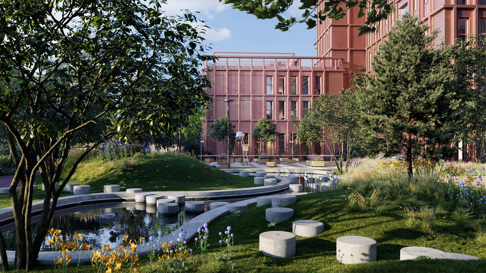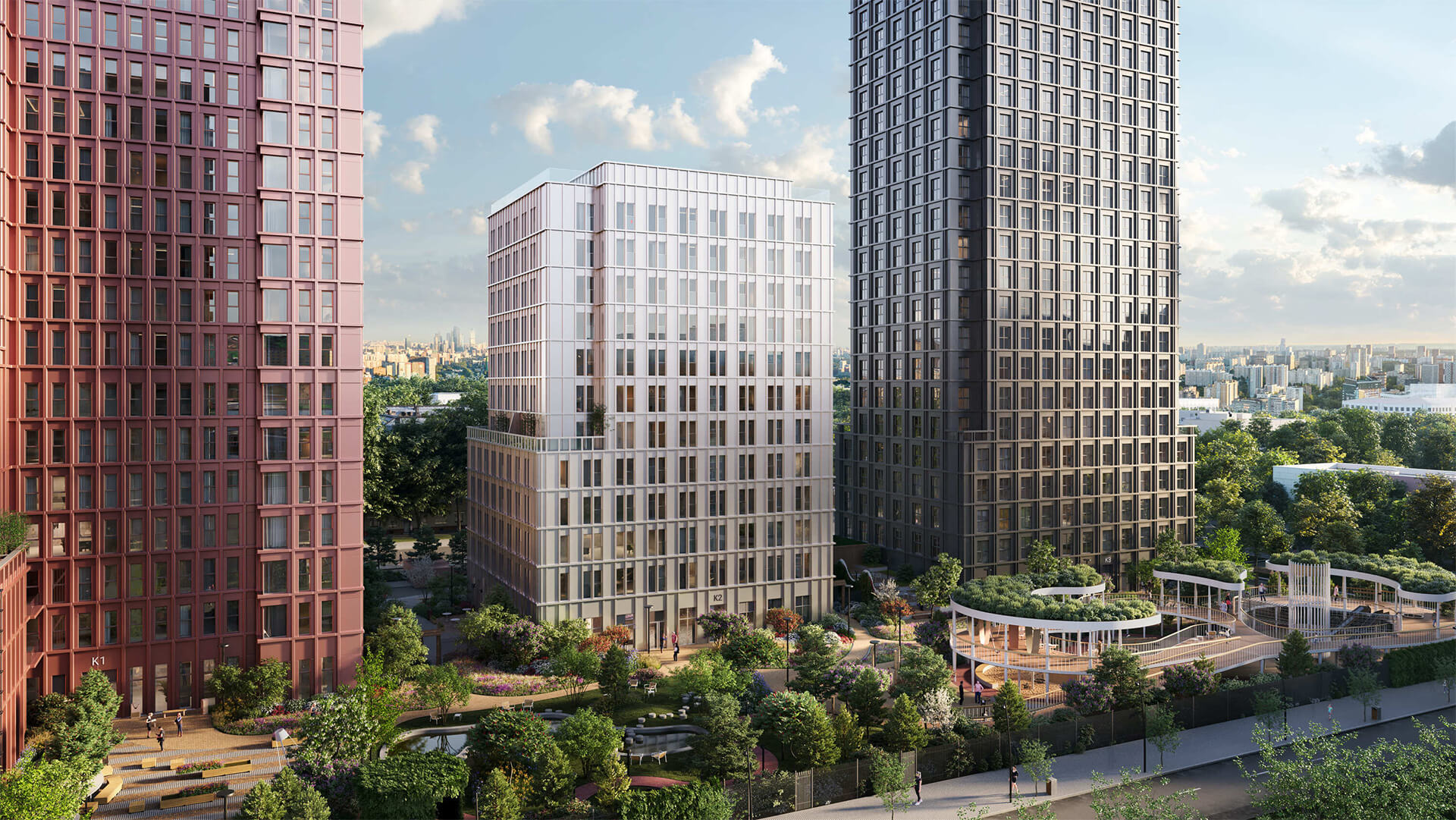 Территория жилого комплекса «Среда на Кутузовском» — это продуманный ландшафтный ансамбль, в основе которого лежит концепция приватности, природной гармонии и комфортной городской среды. Закрытый от посторонних, внутренний двор без машин становится продолжением жилого пространства. Озеленение выполнено по проекту ландшафтных архитекторов с использованием многолетних растений, деревьев, кустарников и сезонных композиций. Созданы тенистые аллеи, живые изгороди, уютные зоны отдыха и прогулочные маршруты. Благодаря различным сценариям освещения территория преображается в вечернее время, создавая мягкую атмосферу уюта и безопасности.