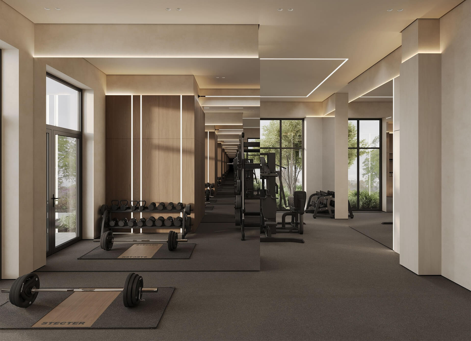Панорамные окна с минималистичными рамами позволяют наполнять квартиры естественным светом и открывают живописные виды на город, реку и зелёные массивы. Террасы, французские балконы и лоджии включены в проектную геометрию фасадов, тем самым формируя живую структуру и давая возможность обитателям ощущать связь с внешним миром. Первый этаж каждого корпуса выполнен в виде сквозных галерей — это оживлённые городские аркады с кафе, магазинами и лобби, создающие атмосферу открытого квартала с европейским духом. Проектная высота потолков и свободные планировочные решения позволяют адаптировать жильё под индивидуальные запросы.
